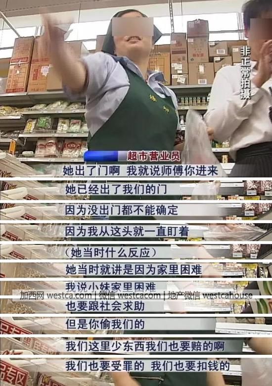 營業員表示,因為超市有規定,不確定顧客有盜竊行為時絕對不能隨意懷疑,但超市丟失東西,營業員要自掏腰包進行賠償,因此當天她便壹路跟隨著劉女士。