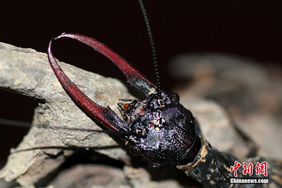 成都華希昆蟲博物館館長趙力介紹說,2014年7月,該館在肆川青城山發現壹種怪蟲,經鑒定是壹種叫越中巨齒蛉的水生昆蟲。對標本測量後發現,最大個體翅展達21厘米,是世界發現過的現存最大水棲昆蟲。圖為越中巨齒蛉鍾愛舔食鴨梨汁液。