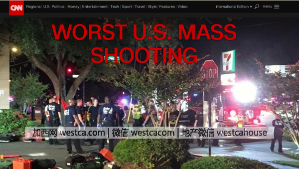 美國CNN有線電視台網站罕見地用最大標題在整個網絡頁面只寫了壹句話新聞:美國遭受歷史最慘痛的槍擊。