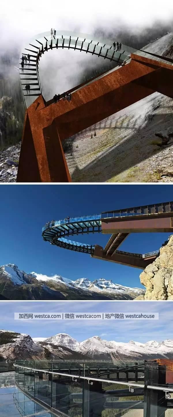 加拿大的布魯斯特觀景天橋從山上延伸出來,別看不怎麼長,該橋完全懸空,真正走在空中,腿直抖……