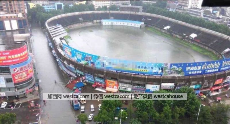 湖北壹體育場被暴雨“灌滿”