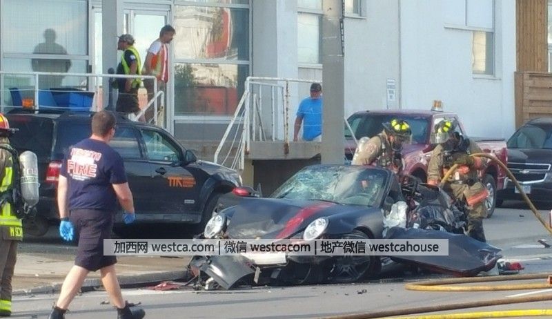 當豪車駛至Queen's Quay East夾Parliament Street壹帶時,不知何故失控,先撞到路中央安全島上,再沖向路邊建築物,2人均被拋出車外,而這部豪車則被撞得面目全非,幾乎就成了壹推廢鐵。