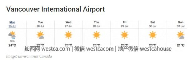 根據加拿大氣象局,今日溫哥華的最高溫度將達到24°C,體感溫度最高29°C。
