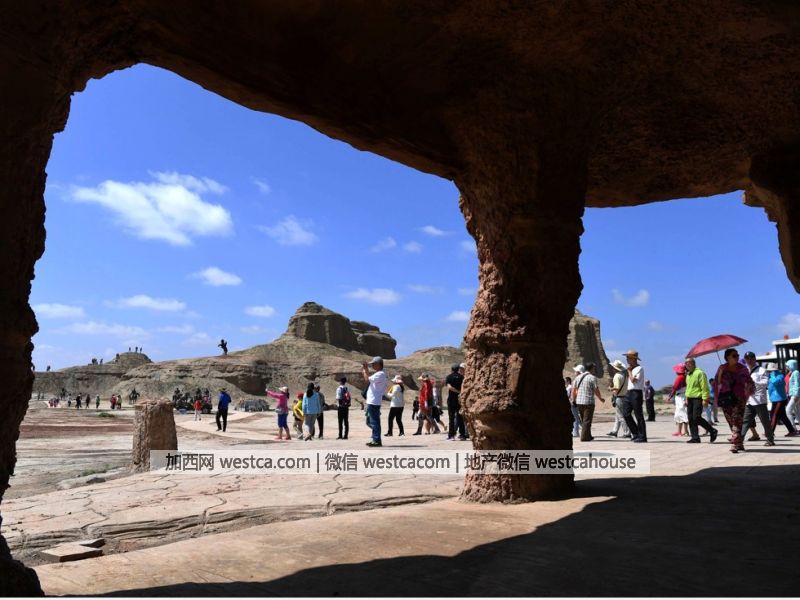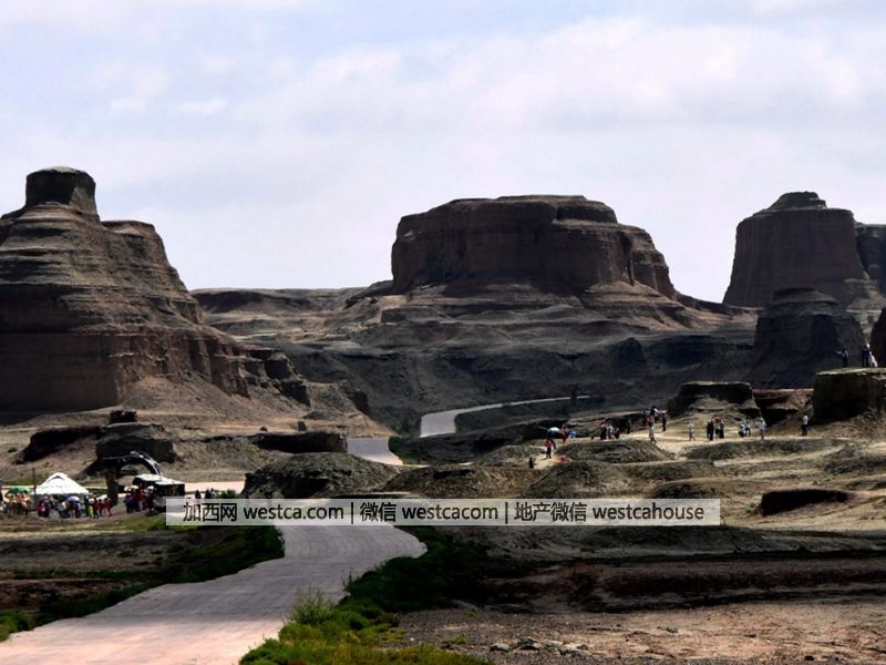 在大自然鬼斧神工長期作用下形成密集而又錯落有致的砂岩奇異形體,舉目眺望,儼然是壹座城堡巍然屹立於戈壁蒼茫大漠之中。