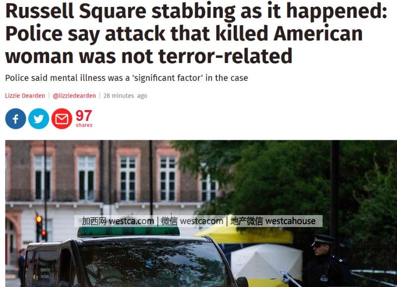 (加西網綜合)英國倫敦市中心著名的羅素廣場(Russell Square)發生砍人事件,造成1名美國女子死亡,6人受傷。警方逮捕壹名是挪威籍犯罪嫌疑人,並指暫無證據證明這起事件與恐擊有關。