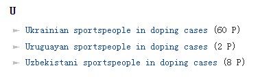 先上壹張維基的運動員嗑藥統計表,該統計是涉嫌嗑藥就被列入,被平反了也算,先看著玩。