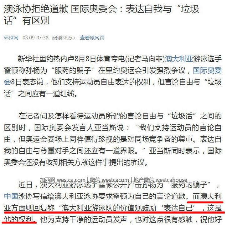 那麼,為何澳大利亞對曾“誤服”而被停賽叁個月的孫楊那麼大意見呢?甚至是舉國媒體對其橫加撻伐呢?