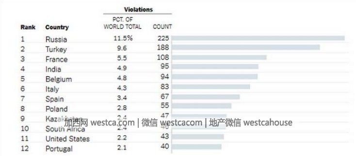 首先我們來看WADA發布的2015的違禁統計前拾贰名的國家: