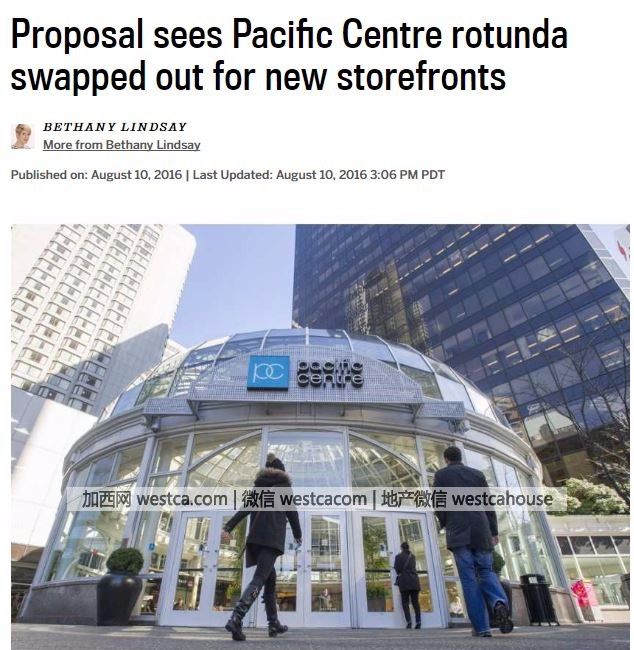 Cadillac Fairview公司已經正式把Pacific Centre商場重建計劃提交給政府,如果政府最終審批通過,那麼這個溫哥華市中心“地標建築”將會被新的購物商場所取代。