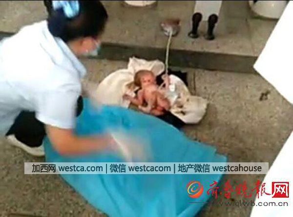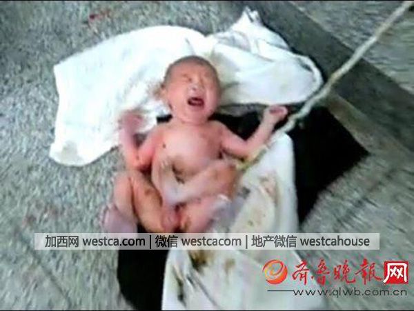 11日下午,微博網友@蜜小惠 發帖稱,濟南市天橋區堤口莊有人把小孩扔進公廁內,小孩是剛出生的女嬰,“臍帶什麼都帶著呢”。@蜜小惠 所出示的照片顯示,壹名嬰兒赤身躺在便池內,身上已沾有糞便。
