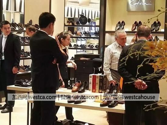 來參加G20杭州峰會的巴西總統特梅爾抽空逛了當地壹間商場。
