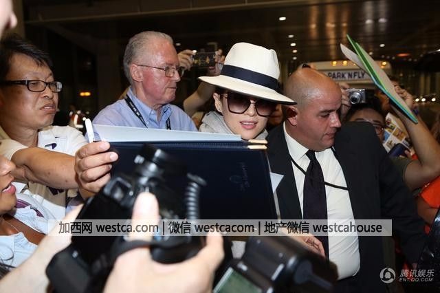 評委會特別安排章子怡在多倫多機場VIP通道抵達。沒想到壹出安全門立刻受到記者影迷蜂擁追逐。