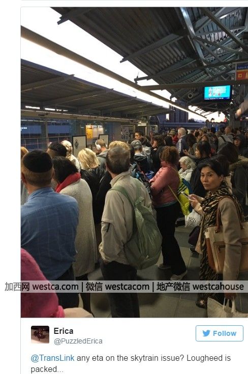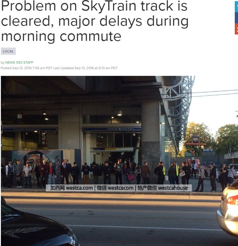 天車Expo世博線位於Edmonds與Commercial-Broadway之間的路軌發生故障,導致大面積延誤。