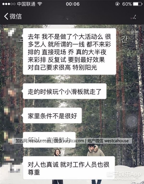 而橘子君的好友此時也發來這樣壹段微信,他們曾經有過短暫的合作,在他的眼中,喬任梁真的是壹位非常努力認真的男孩!