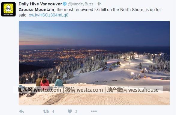 “壹生僅有壹次”的投資機會來了: BC省著名的旅游景點也是最熱門滑雪勝地之壹松雞山(Grouse Mountain),昨日被正式的掛牌出售啦!