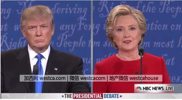 从美国东部时间晚上九点(美国西部时间晚上六点)以后的一个半小时内,美国几乎所有的电视屏幕上,都闪烁着这样一个经典的分切画面:一头软篷篷金发的特朗普,噘着大嘴,斜着眼睛,不停插话打断侃侃而谈的红衣希拉里。下面的观众看得如醉如痴,深入剧情。