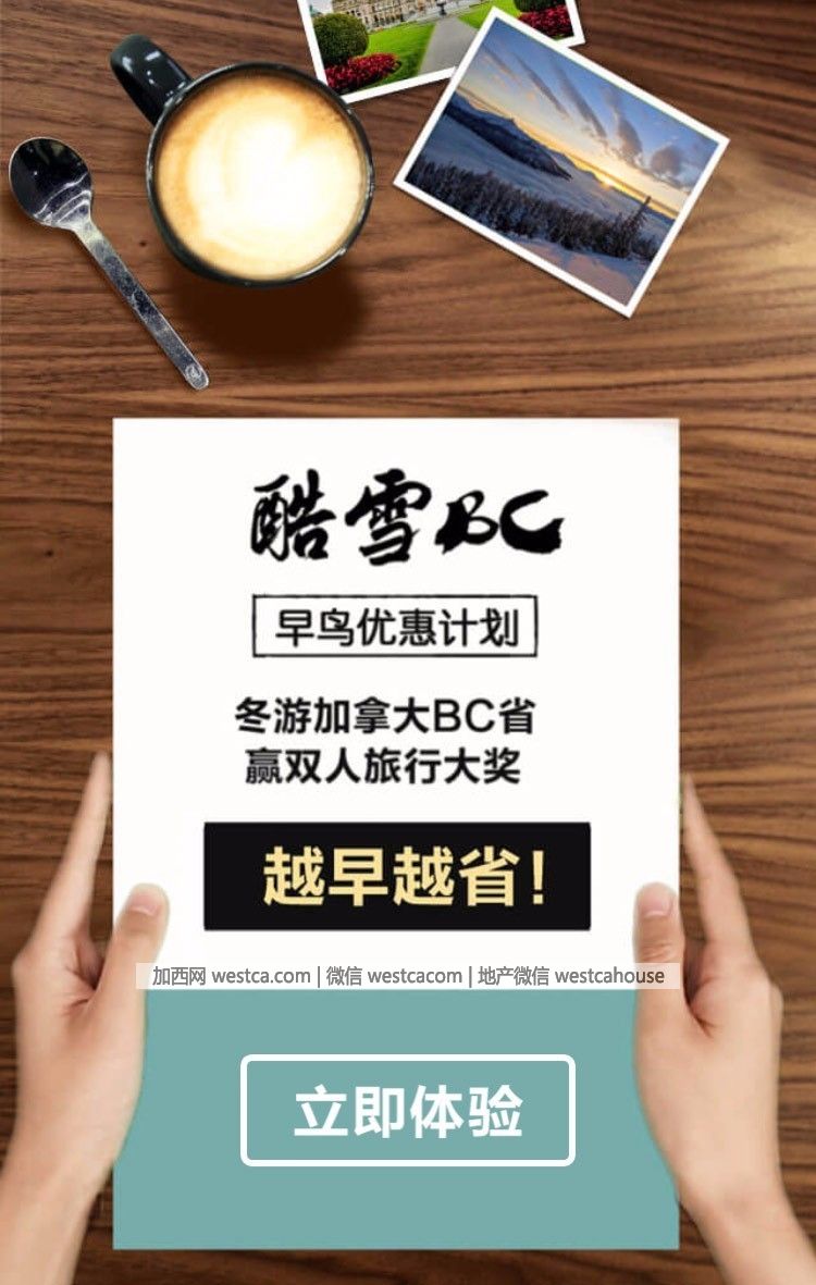 沒錯,想“惠”玩,就得趁早!加拿大BC省【2016酷雪BC早鳥特惠計劃】已經推出,你立即報名預訂,就可享受最高40%+的旅行優惠折扣,還有機會贏取加拿大BC省免費雙人大獎。讓你輕易省下大筆花銷,玩轉世界級滑雪勝地!!!
