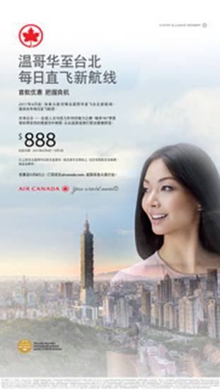 把握優惠良機!訂票請至www.aircanada.com/zh 或聯系各大旅行社。