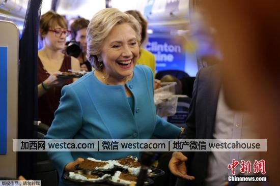 當地時間2016年10月26日,美國,26日是希拉裡的69歲生日。飛往紐約(專題)的競選專機上,希拉裡向隨行的媒體記者們派送生日蛋糕。