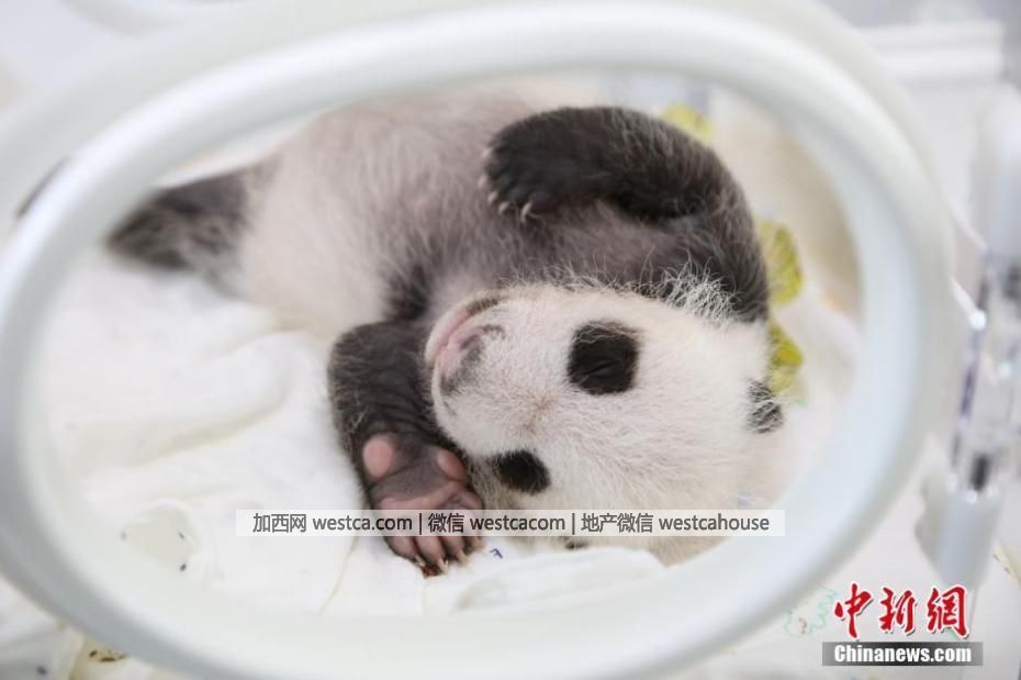 出生拾天,我開始出現黑眼圈啦。肆肢和耳朵也開始變黑,我可終於有個熊貓的樣兒了。接下來的日子裡,我每天吃和睡,直到第45天我才真正睜開眼睛打量這個世界,看清了壹直陪在我身邊的媽媽的樣子。圖為2016年,在中國大熊貓保護研究中心上海基地誕生的首只大熊貓寶寶滿月了。