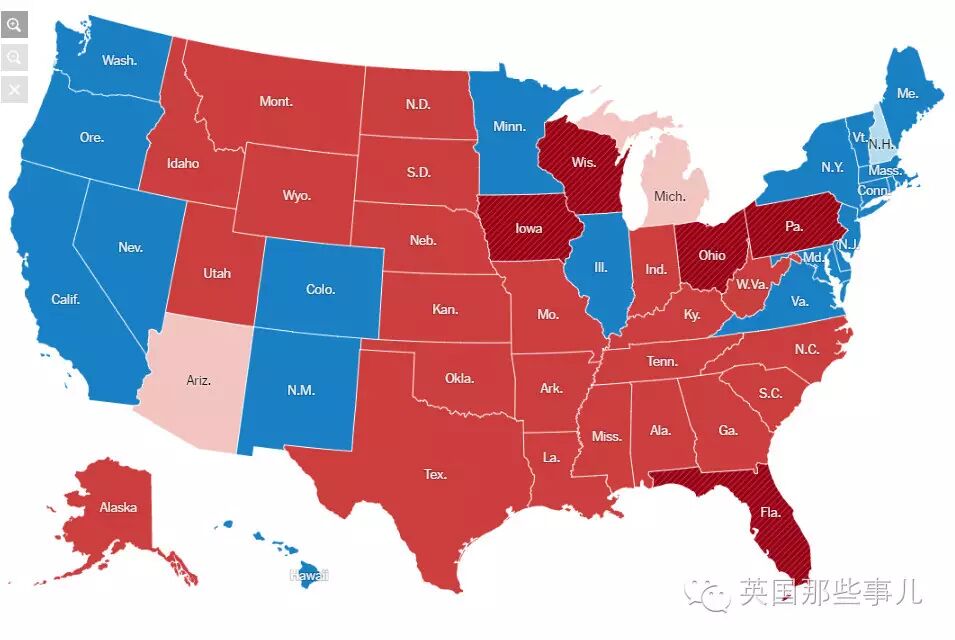 而東西海岸卻是蔚藍海洋,清壹色希拉裡地盤。