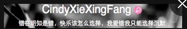 谢杏芳的微博简介中写道:“错在明知是错,快乐该怎么选择,我爱错我只能选择沉默”,这是孙燕姿歌曲《飘着》中的一段歌词,如今看来十分令人唏嘘。在发布原谅林丹的微博后,谢杏芳已将该简介删除。