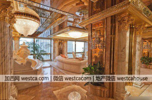 據悉豪宅從66層開始便是叁層復式豪宅,視野開闊,可以俯瞰中央公園全景。豪宅門前用24K金鑲邊、室內充滿鑽石和水晶的光芒,走的是法國凡爾賽宮畫風,珠光寶氣、極盡奢華,有媒體表示比白宮還要奢華。