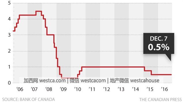 星期叁,2016年12月7日,加拿大央行 – 加拿大銀行宣布維持基准利率不變,仍為0.5%,理由是經濟可能放緩。