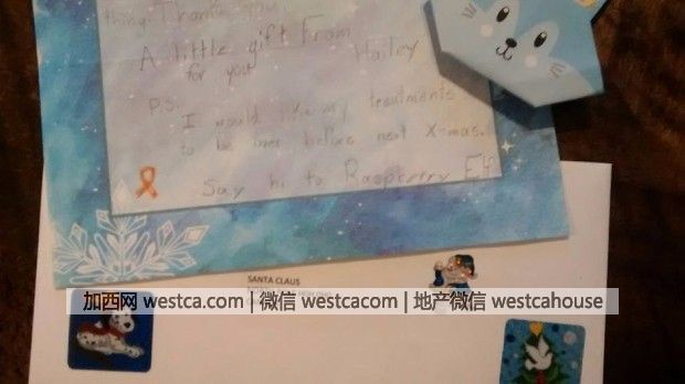(加西網綜合)同樣患白血病,中國“羅壹笑捐款”事件顛覆國人的叁觀,而壹名正與白血病作斗爭的加拿大9歲女孩和她的媽媽正被來自加拿大各地的聖誕卡暖心。