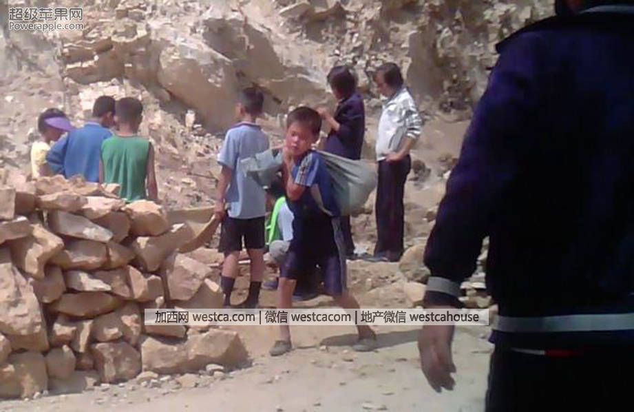 壹名男孩奮力地背起了石塊,往鐵道方向走去。當地的老師或者監護人對記者說,讓孩子勞作的目的是為了提高他們的奉獻精神。