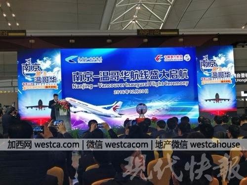 而中國時間12 月 20 日 的14:00,南京直飛溫哥華航線也迎來首飛。
