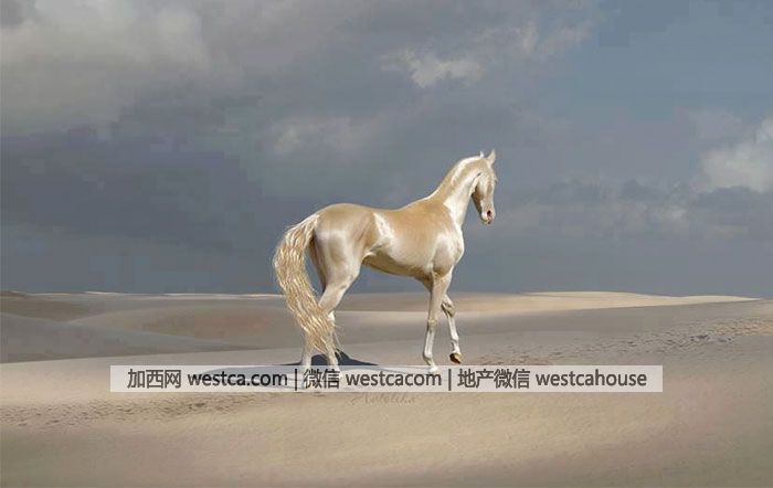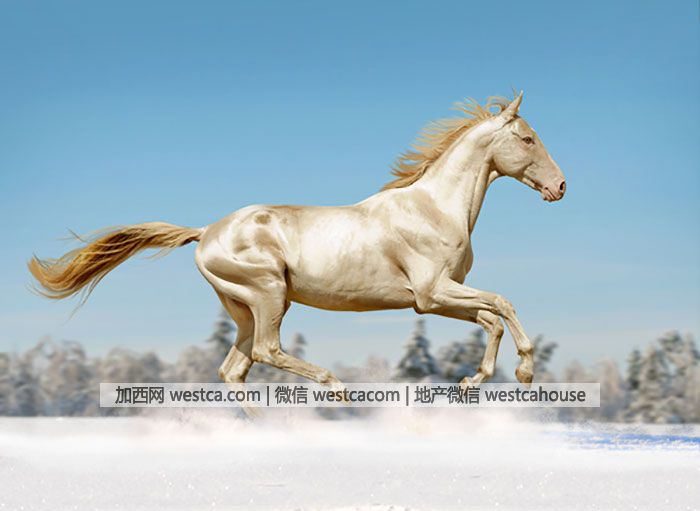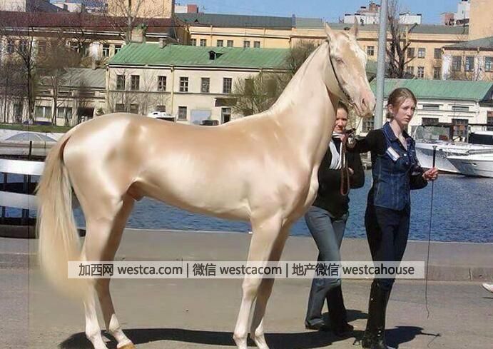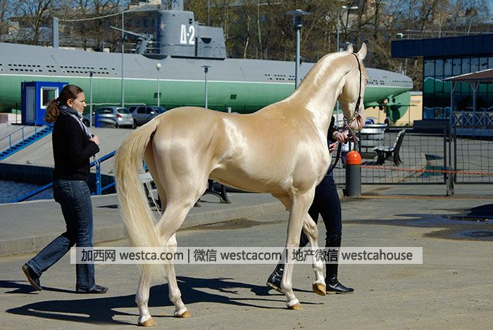 它们来自土库曼斯坦,出名的原因是身上的皮毛仿佛穿着金属外套,浑身上下闪闪发光。图为来自“天堂”的马。
