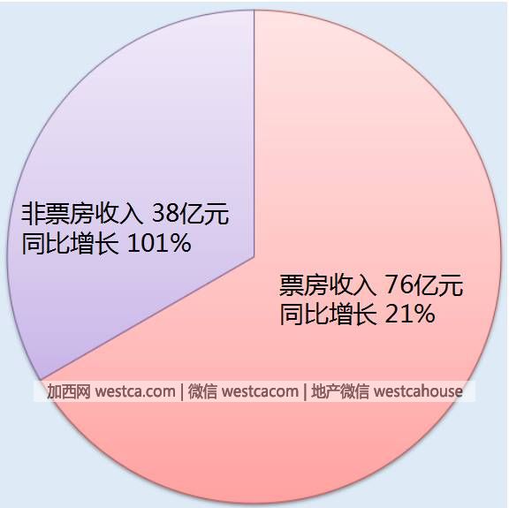 簡報顯示,萬達院線去年實現營業收入111億元,同比增長39%。其中,票房為76億元,同比增長21%;非票房收入38億元,同比增長101%。(為什麼76+38=114億,而萬達院線自稱是111億?答案或許得等年報出爐才知道了)