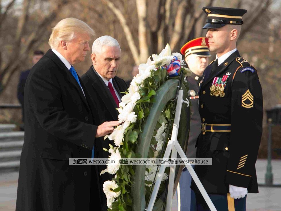 特朗普與彭斯前往阿靈頓公園敬獻花圈(圖源:VCG)