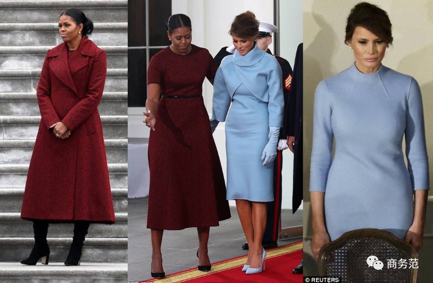當天兩人穿著上也是暗中較量,米歇爾最後壹次“第壹夫人”裝束 ,還是選的Jason Wu(看來是真愛),梅拉尼婭果然穿了范主之前聽聞的Ralph Lauren.