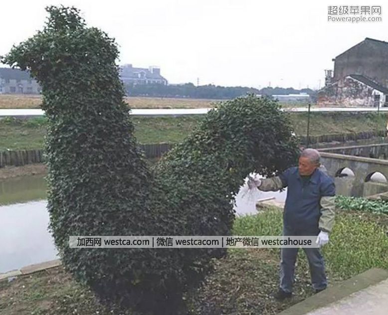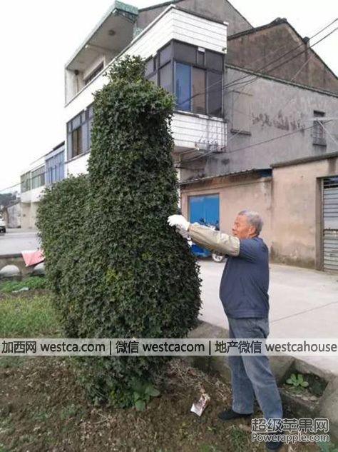 "現在,我每年都要修整兩叁次,否則的話就不好看。"如今,這棵雄雞造型的景觀樹身高2.5米,遠遠望去顯得拾分威武。王大爺還有專門的梯子爬上去修整它。為此,王大爺也沒有少摔跟斗。只因為喜歡,雖然在這只雞身上老人家沒少吃苦頭,但仍數拾年如壹日地堅持著。