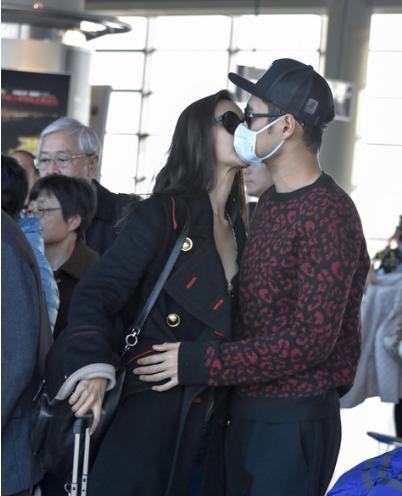隔著口罩親下去的不止這壹對,就連老妻少夫的謝霆鋒王菲這對情侶也在機場玩起了親親。