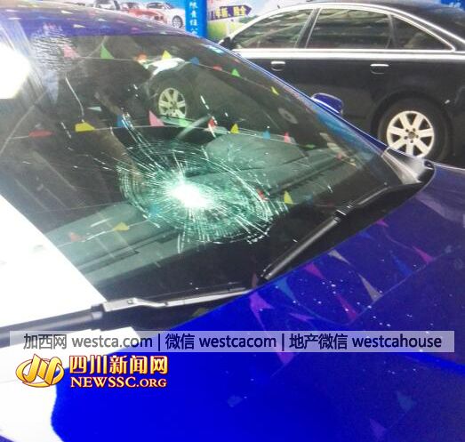豪車前擋風玻璃被砸碎裂