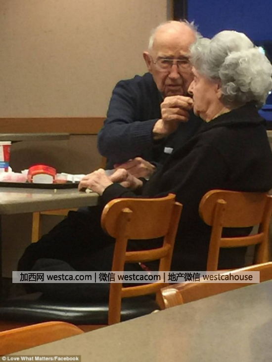 照片中的夫婦當時在溫蒂(Wendys)快餐店內吃飯,坐在他們身旁的另壹位客人拍下了這張照片;老人對拍照的人說,他的妻子患有阿茲海默病(老年失智症),如果他和妻子都能活到6月,兩人已經結婚75年。