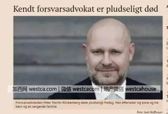 報道稱,該律師17日下午在家鄉最愛的壹棟小屋中死亡。其兄弟克裡斯蒂安·布林肯博透露,死者育有10、13和15歲的孩子。