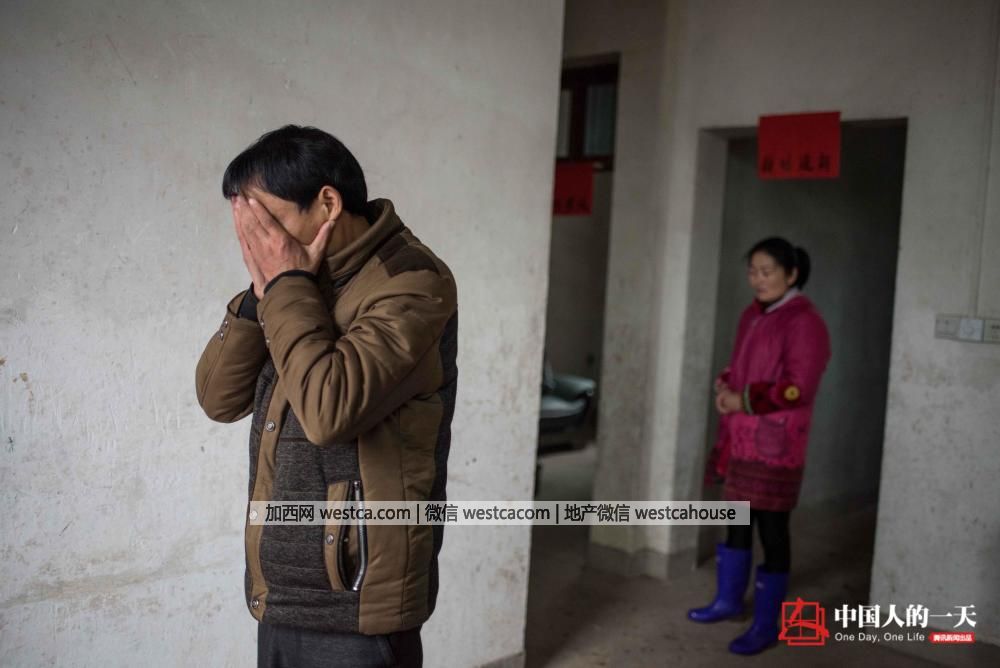 曾聖生壹家住江西省峽江縣的壹個普通村莊,這裡居民的收入來源主要是種水稻和打零工。2011年他第壹次被查出肝癌,做了切割手術,2016年的8月再次復發,又做了切割手術,然而4個月後再次復發。在被查出肝癌之前,曾聖生已經患有拾幾年的乙肝。圖為2017年3月17日,曾聖生與妻子聶桂花在屋內,曾雙手掩面。(圖/文 戴繼民)
