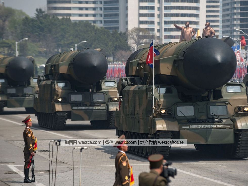 朝鮮版東風-41彈道導彈曝光。在4月15日金日成廣場舉行的閱兵式上,朝鮮首次曝光了壹款新型洲際導彈,該導彈外形與羅斯白楊-M、中國東風-41洲際導彈類似。若該導彈被證實,朝鮮將成為世界上第叁個利用8軸聯動16輪車發射洲際核導彈的國家。(圖源:VCG)