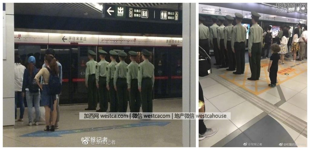 最近,兩張軍人在地鐵列隊候車的照片走紅了。