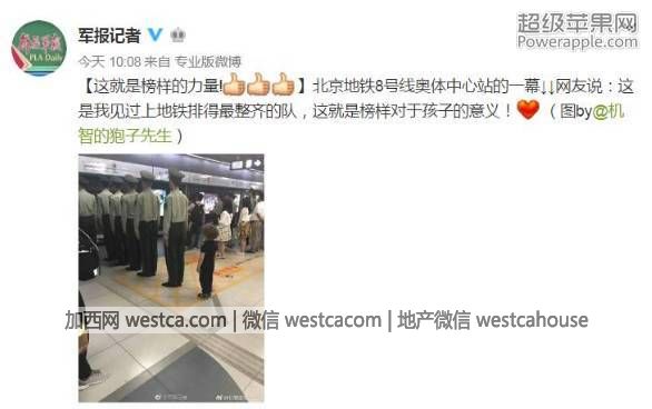 其中壹張,壹列軍人筆直地等車,壹位小朋友學著他們的樣子。網絡紛紛贊揚:這是榜樣的力量!