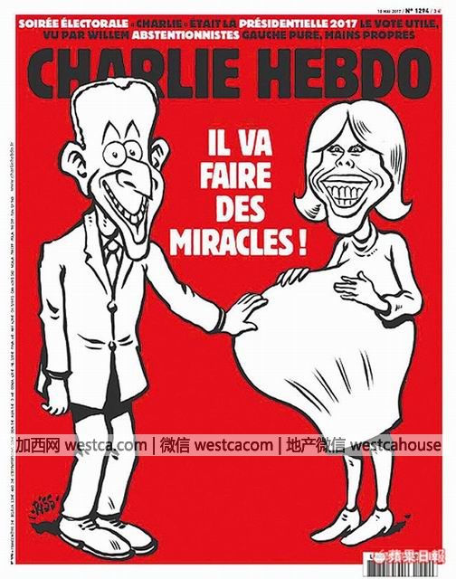 法國史上最年輕總統馬克宏昨宣誓就職,上周贰出刊的知名嘲諷刊物《查理周報》(Charlie Hebdo)封面卻畫了馬可宏和明顯懷孕的年長妻子布莉姬,斗大標題還說"他讓奇蹟發生",被批評是年齡歧視兼性別歧視。