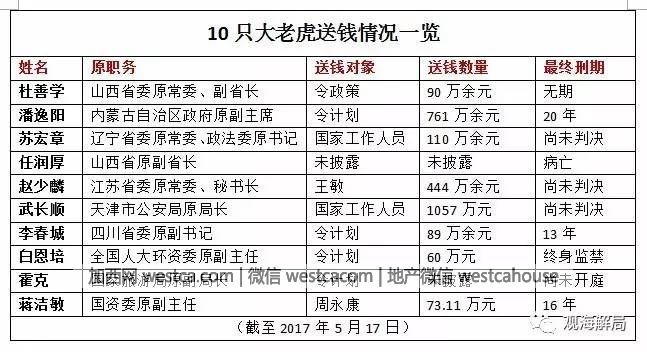 觀海解局記者簡單梳理發現,至少有10名大老虎給他人送錢,其中2人已領行賄罪,對象分別是令政策、令計劃,即令狐家族。
