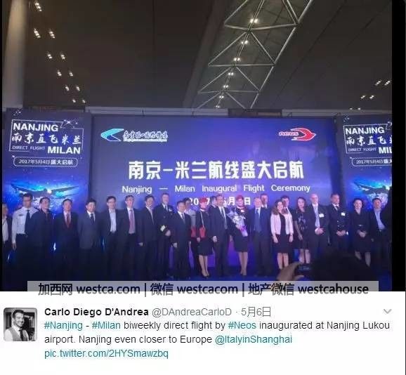 ▲南京直飛米蘭首航儀式 圖片來源:推特網友