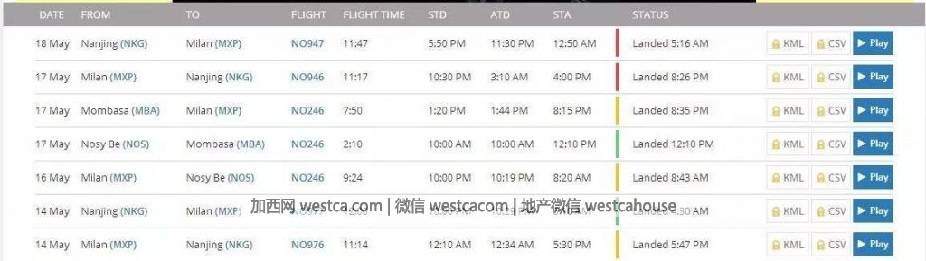 ▲南京至米蘭航班機型 圖片Radar