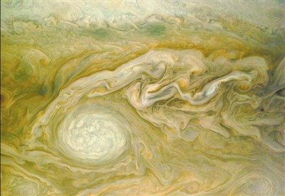 “朱诺”号2017年稍早时间拍摄的木星大气中的巨大风暴。