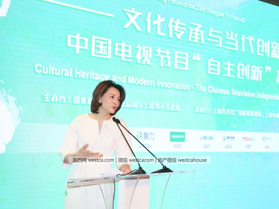 北京時間6月13日,第23屆上海電視節開幕論壇“文化傳承與當代創新——中國電視節目自主創新高峰會”舉行。《朗讀者》制片人、主持人董卿亮相做演講,講述了她以制作人的身份制作朗讀者的經歷。(圖源:VCG)